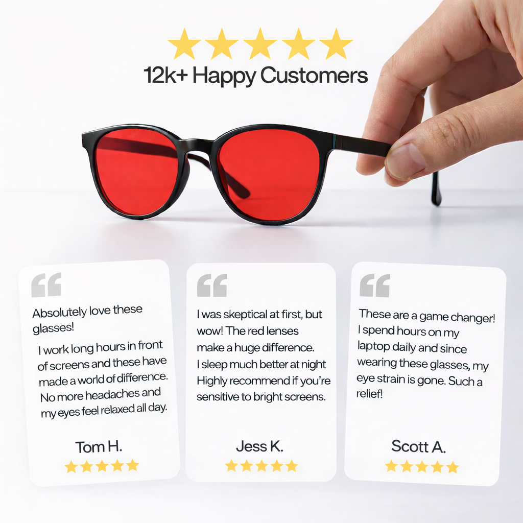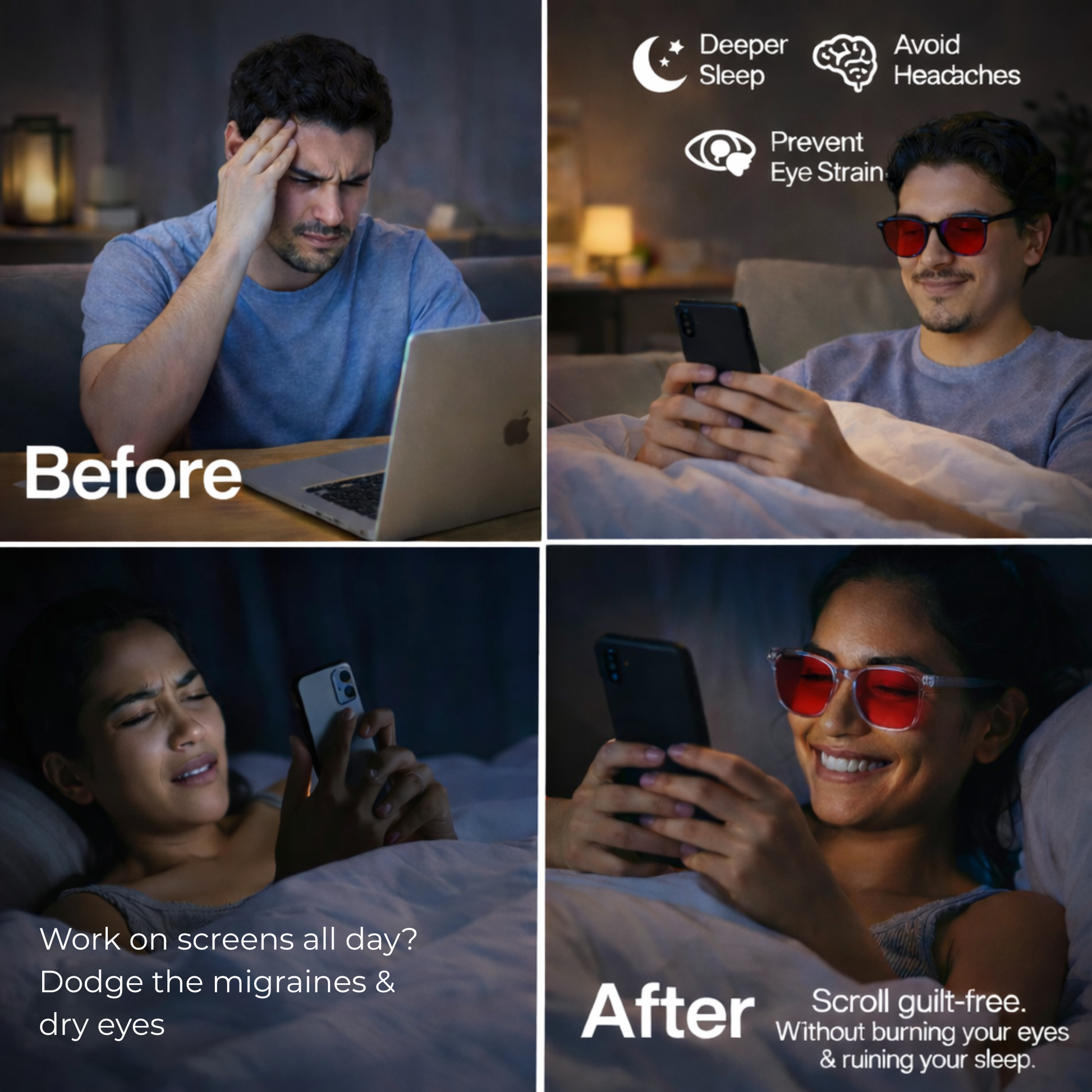 Red-lens filters block the short-wavelength light your devices emit — reducing strain, unlocking deeper sleep, and keeping your energy up.